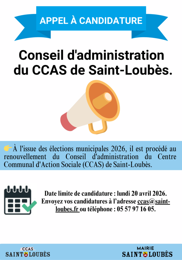 Envoyez vos candidatures à l’adresse ccas@saint-loubes.fr.